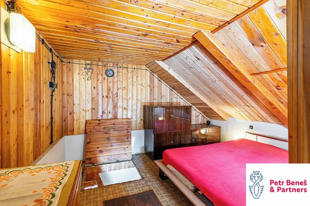 Velkým benefitem je vlastní vrtaná studna s dostatkem vody a zavedená elektřina. Svažitý pozemek podtrhuje přírodní charakter celé nemovitosti a zároveň nabízí zajímavé možnosti využití – ať už pro vytvoření odpočinkových zón, posezení v zeleni nebo prostoru pro parkování auta.