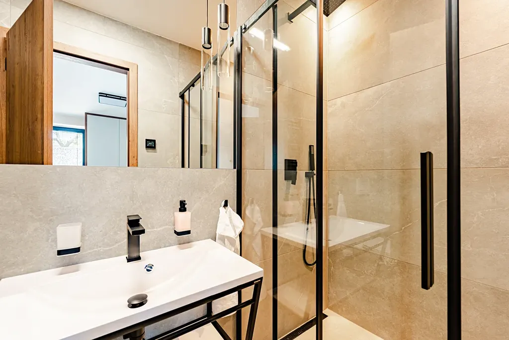 Každá ložnice má vlastní koupelnu se sprchovým koutem a toaletou. Součástí zařízení je 65“ TV s kabelovým připojením, herní konzola X-Box 360, vysokorychlostní internetové připojení pomocí Wifi.