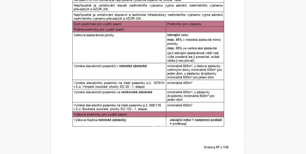 Parametry pozemku