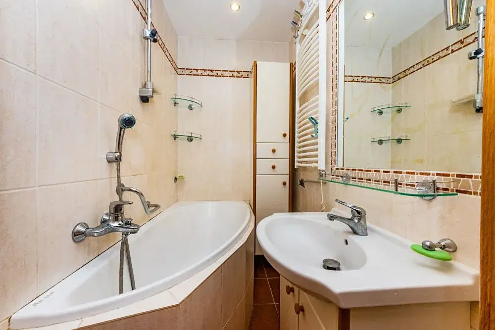 Zděné koupelnové jádro s vanou, plastová okna, v předsíni prostorné vestavěné skříně.