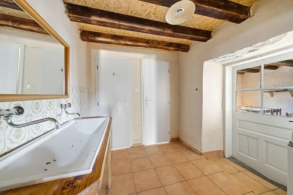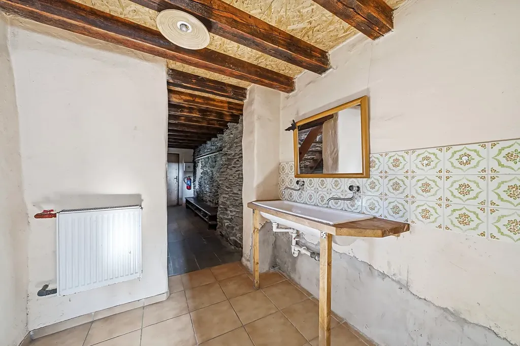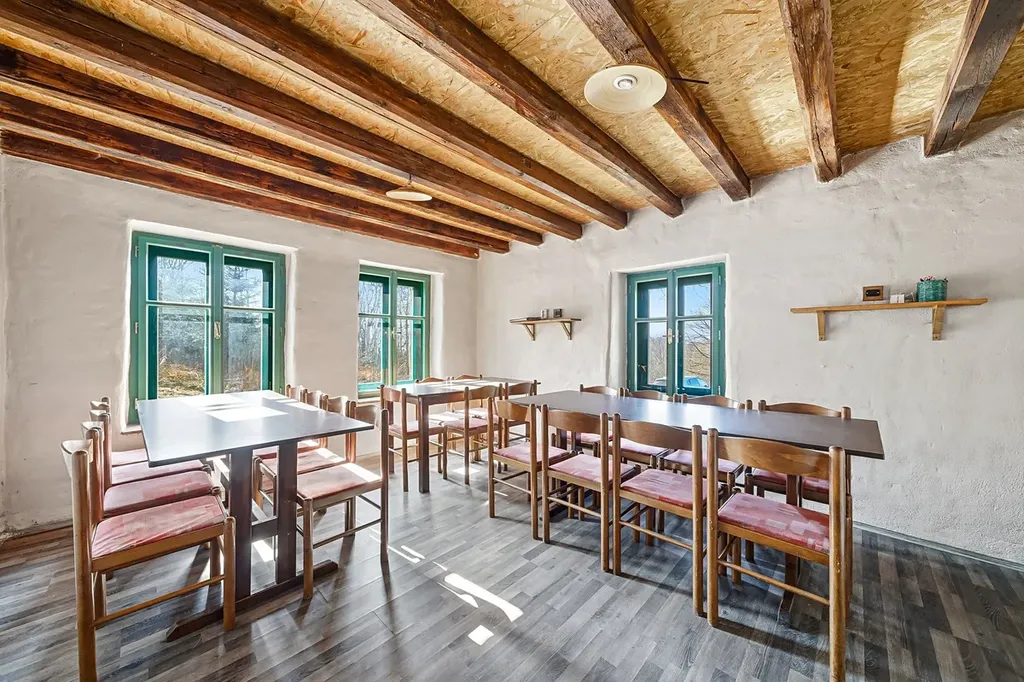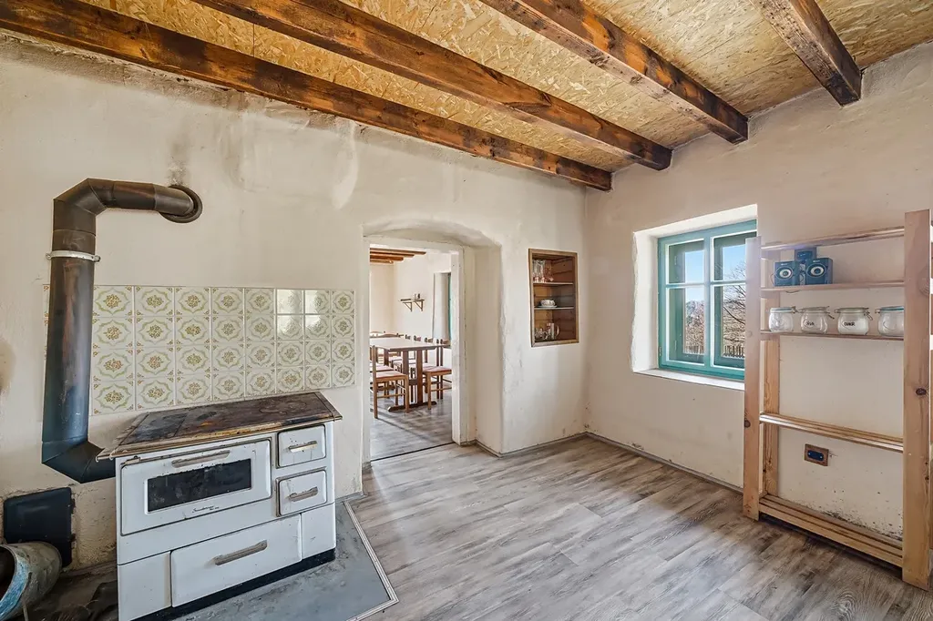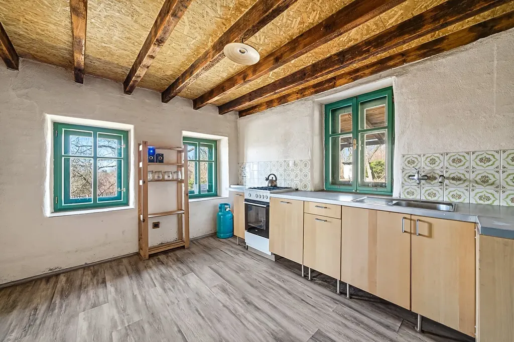 vytápění: krbová kamna s výměníkem a rozvodem do radiátorů po celé chatě
