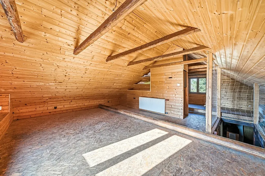 Tato útulná chata se nachází na krásném slunném pozemku o velikosti 1 239 m², orientovaném na jihozápad, což zajišťuje dostatek slunce po celý den a jedinečné západy slunce s výhledem do okolní přírody.