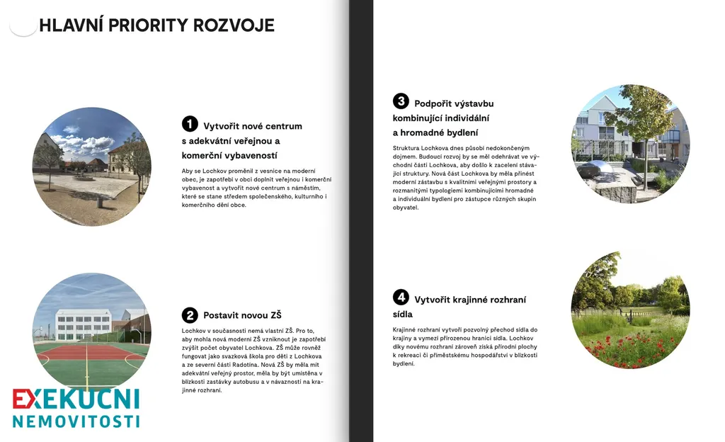 Městská část Lochkov, je velmi dobře funkční s příjemným přístupem lidí zajišťující samosprávu. Městská část má aktuálně zpracovaný územní plán s předpokládaným rozvojem v dalších dvaceti letech. Avšak dle informací pana starosty, bude tento rozvoj vždy plně zachovávat bydlení vesnického charakteru. Hlavní priority plánu rozvoje – viz fotodokumentace.