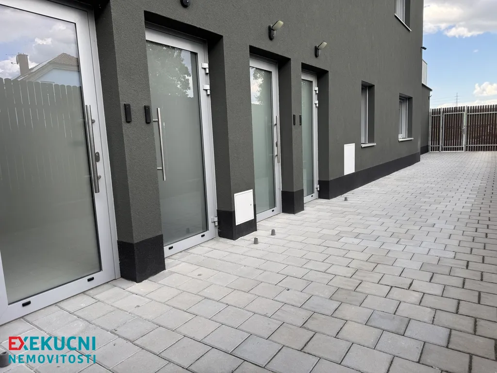 Tato jednotka nabízí komfortní dispoziční řešení s prostornou chodbou, samostatným WC, koupelnou, kuchyní, obývacím pokojem, pokojem, ložnicí se šatnou a samostatnou pracovnou. K jednotce dále náleží komfortní uzavřená zahrada s bazénem o rozloze 119 m²