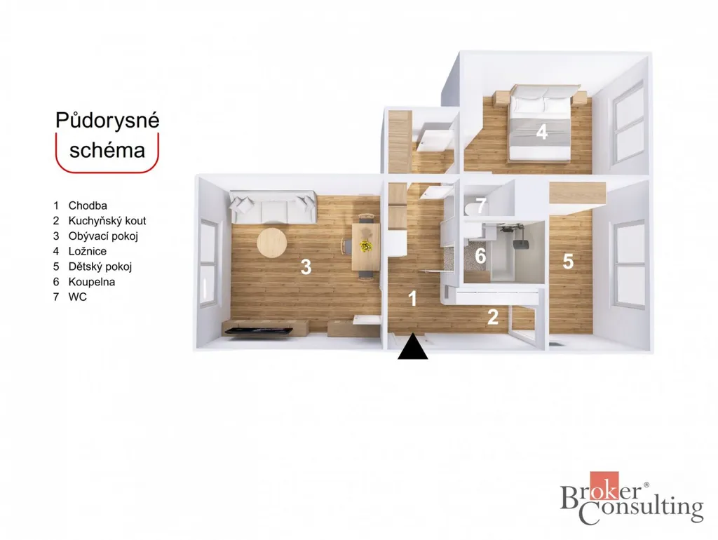 Chytrá dispozice 3+kk: Přesunutím nové kuchyňské linky (včetně myčky) do původní předsíně vznikl zcela samostatný pokoj navíc – ideální jako dětský pokoj, pracovna nebo ložnice. Přesné uspořádání si můžete prohlédnout v přiloženém půdorysu.