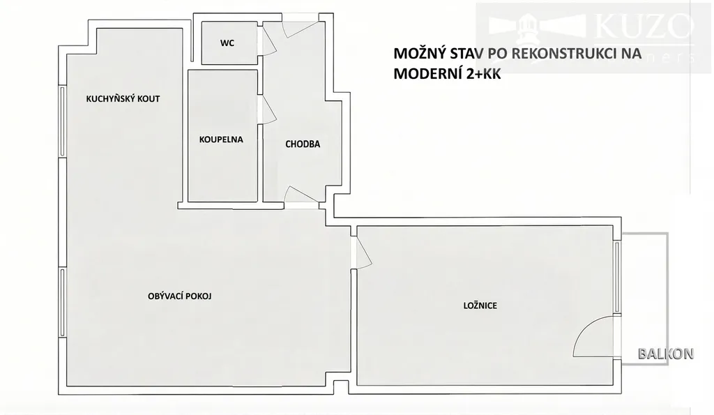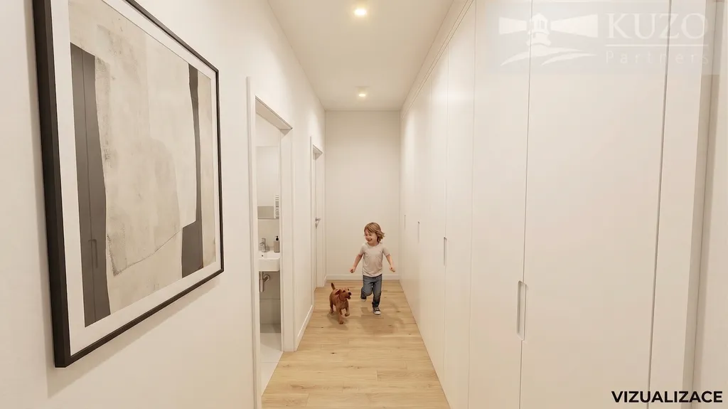 Kreativní dispozice: Nabízí se zde velmi oblíbená úprava – zvětšení koupelny na úkor zbytečně velkorysé chodby, čímž získáte moderní a vzdušné zázemí.