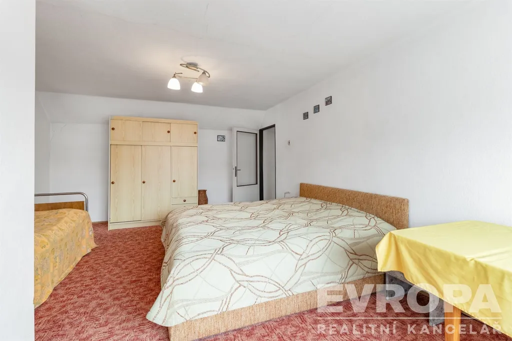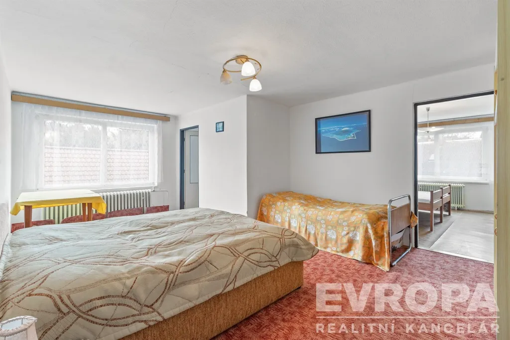 V patře pak tři ložnice a balkon, ideální pro klidné večery s výhledem do okolní krajiny.