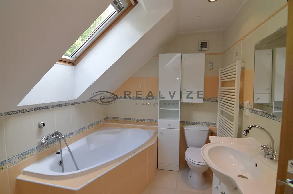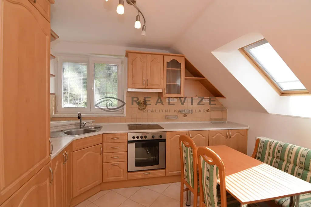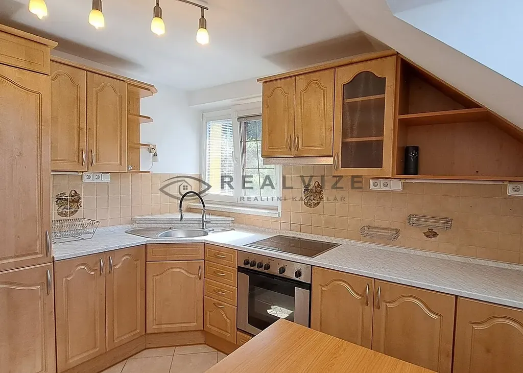 Nabízíme k pronájmu podkrovní byt 3 + 1 o výměře 60 m2 v prvním poschodí zděného domu v ulici Sadová, v Hluboké nad Vltavou. Byt má samostatný vstup ze zahrady, která je součástí pronájmu. Kuchyňská linka se spotřebiči (sklokeramická deska, vestavná trouba, příprava na myčku, digestoř, lednice s mrazákem). Koupelna s vanou, umyvadlem a topným žebříkem a přípojkou na pračku, toaleta. Vytápění plynovým kotlem, příprava na krbová kamna, nová fasáda. Dvě parkovací stání ve dvoře. Měsíční platby: nájemné 14.000 Kč, zálohy na energie, služby 3.000 Kč/2 os., 3.500,-Kč/3 os., internet zaveden, satelit. Vratná jistota 20.000 Kč, provize RK 16.940 Kč. Nekuřáci, zvíře po dohodě, max. 3 osoby. K dispozici ihned.