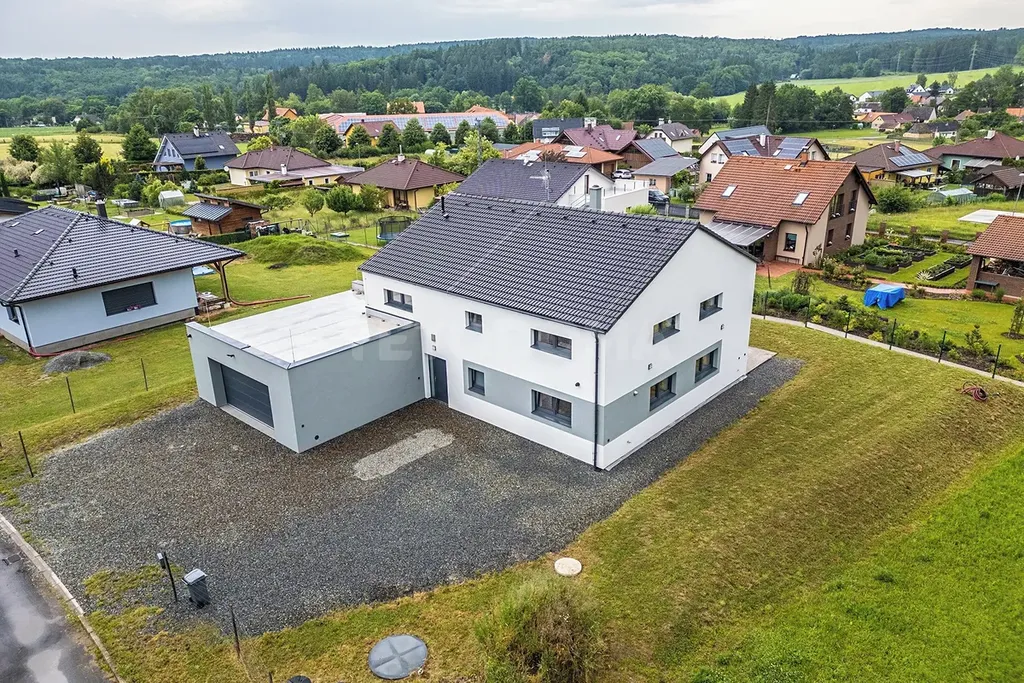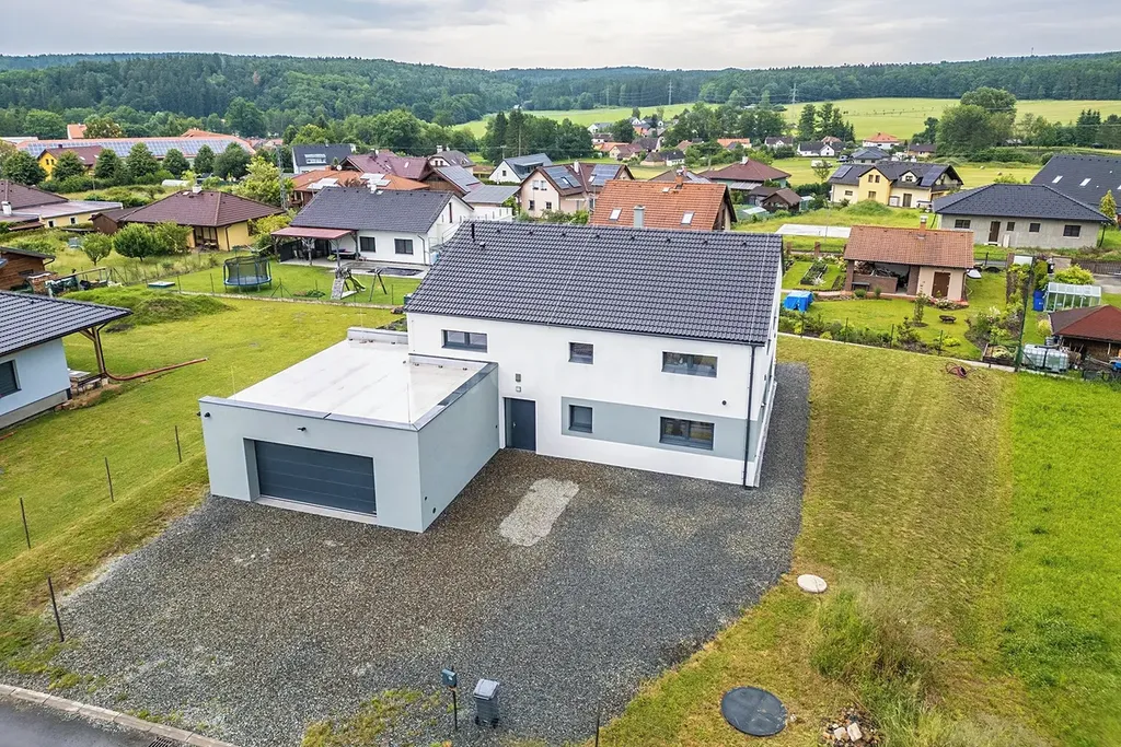 Moderní, ekologický a prestižní rodinný dům v malebné obci Kornatice, pouhých 10 km od Plzně. Tento kolaudovaný projekt z roku 2022 představuje kombinaci vysokého standardu, komfortu a ekologické udržitelnosti, ideální pro náročné klienty hledající kvalitní a dlouhodobé bydlení.