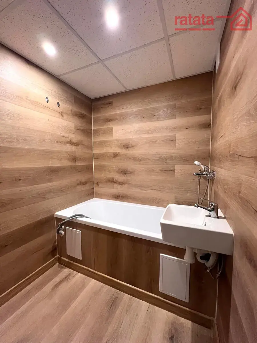 Je zde kuchyňská linka, plynový sporák, vana s umyvadlem a WC. Na podlahách je položena plovoucí podlaha a lino. Byt je volný k nastěhování od 1.4.2026.