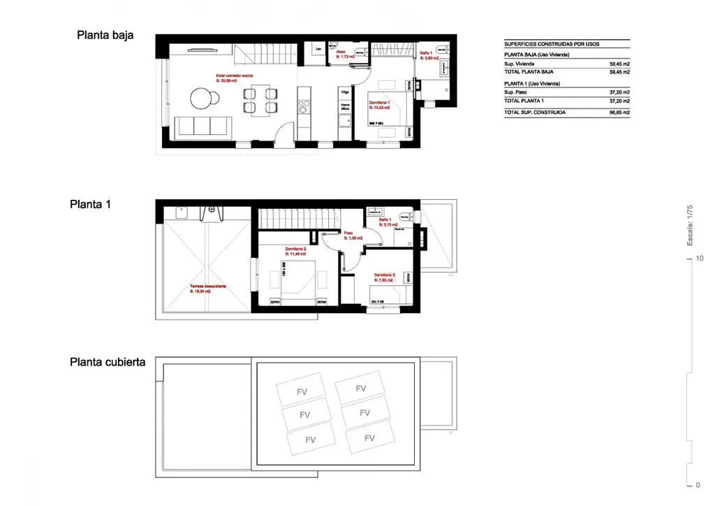 Moderní řadové domy novostavby v nové části Daya Nueva, jen pár minut chůze od centra města.
