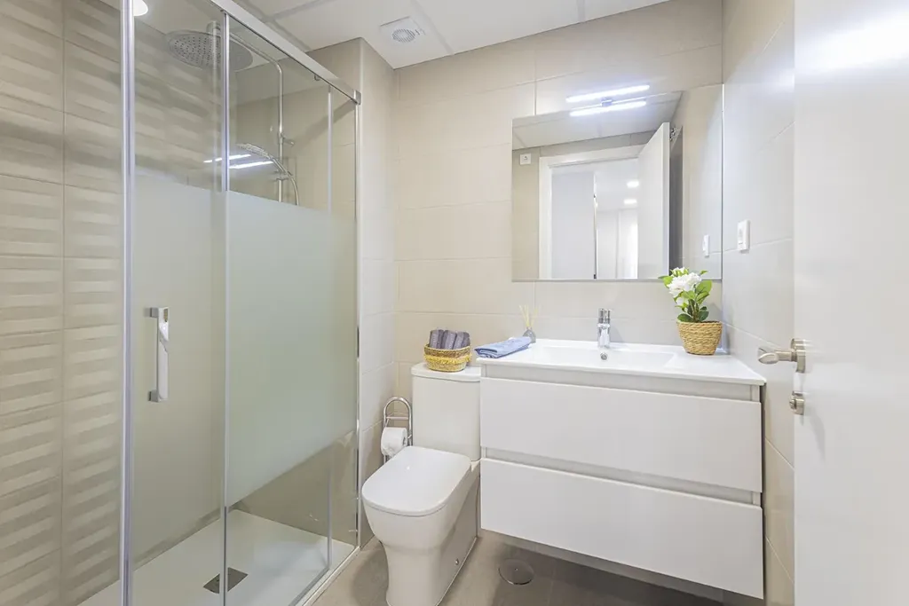 Apartmány mají bezpečnostní vstupní dveře a bílé lakované interiérové dveře s nerezovým kováním. Bílé monoblokové žaluzie a dvojitá okna s izolační vzduchovou komorou. V hlavní ložnici je vestavěná skříň s posuvnými dveřmi, s horní policí, šatní tyčí a tří zásuvkovou komodou.