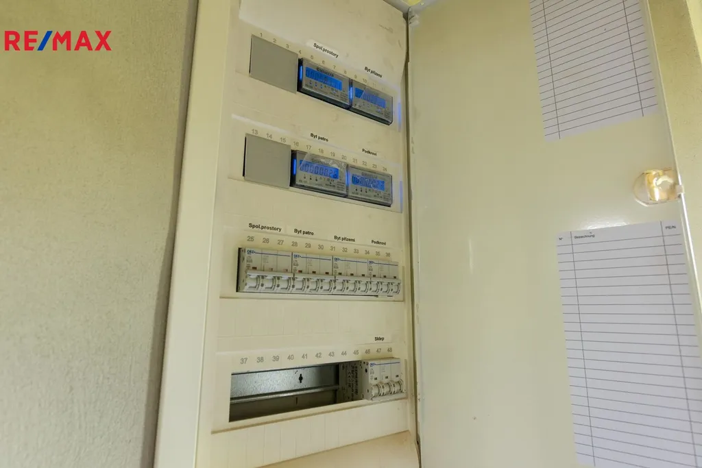 Kompletně odstraněny stávající stropy, ponechány jen nosné trámy. Odstraněny příčky, kompletně osekány stávající omítky až na zdivo, vybourány okna. Zcela nové příčky, provedeny kompletní nové rozvody elektro vč. nového hlavního rozvaděče (u vstupu do objektu) a nových podružných rozvaděčů.