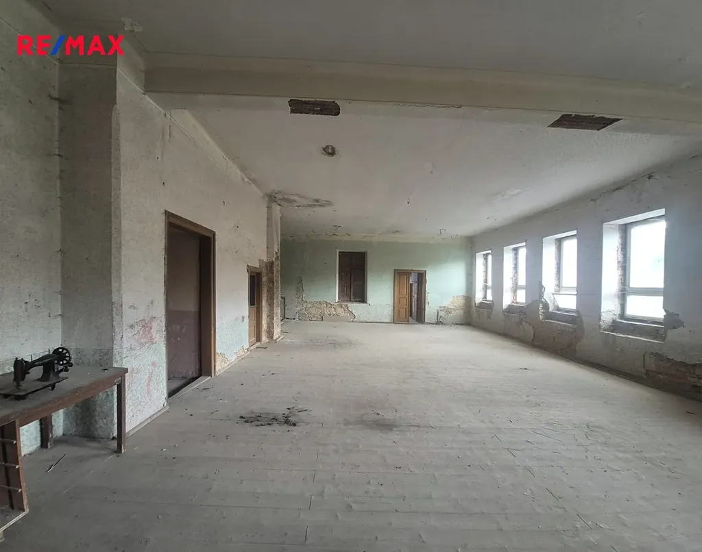 V přízemí o celkové výměře 155 m2 se nachází bývalý lokál hostince o výměře cca 38 m2, navazující malá kuchyňka, dále příslušenství, sklady, kotelna, sklípek a sociální zařízení.