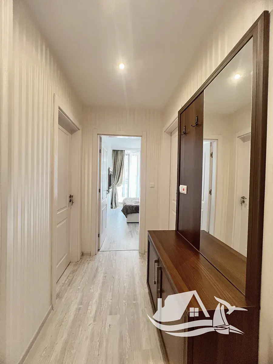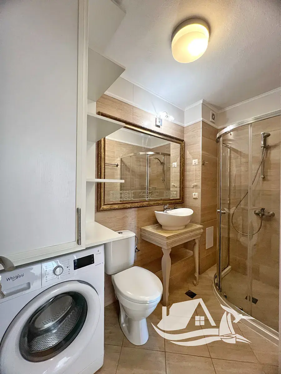 Tento krásný apartmán o rozloze 60 m² se nachází ve čtvrtém podlaží moderního rezidenčního komplexu a svou atmosférou nabízí přesně to, co od života u moře čekáte. Interiér tvoří světlý obývací pokoj s kuchyňským koutem, samostatná ložnice, koupelna s toaletou a terasa, ze které se otevírá příjemný pohled na moře a okolní zeleň. Prostor působí harmonicky, svěže a přirozeně – jako místo, kam se budete rádi vracet.