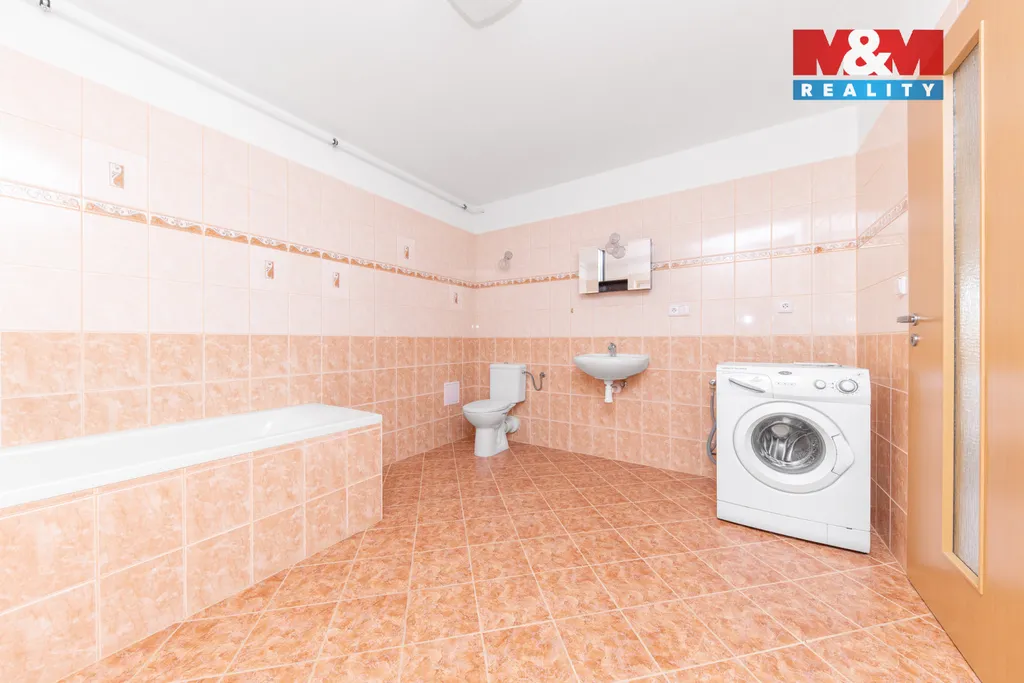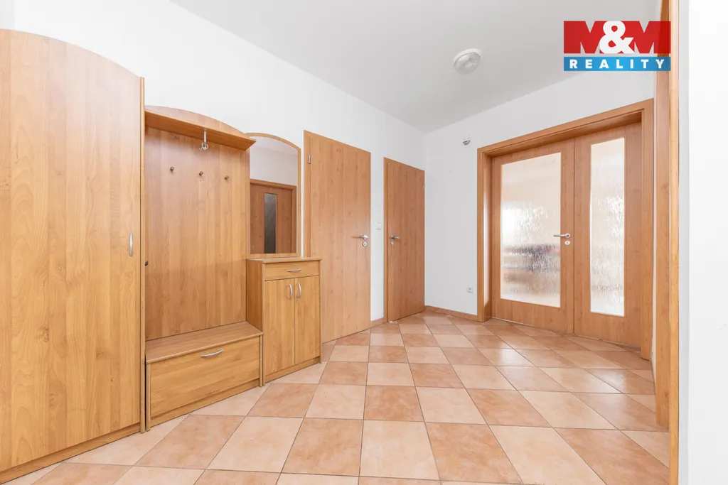 Dům má tři podlaží. V prvním podlaží se nachází prostorný obývací pokoj s plně vybavenou kuchyňskou linkou, koupelna, WC a šatna. Ve druhém podlaží jsou tři světlé, velké pokoje a prostorná koupelna. Snížené podlaží nabízí další velkou místnost s kuchyňskou linkou, koupelnu, technické zázemí s plynovým kotlem zajišťujícím vytápění celého domu. Odtud je přímý vstup na zahradu.
