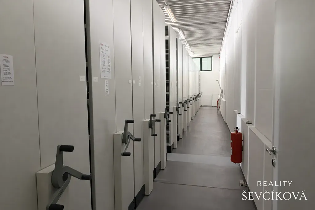 Prostory jsou vytápěné (administrativa + přední část archivu) a součástí pronájmu je kompletní pevně instalovaná regálová technologie Dexion, určená výhradně pro profesionální archivaci dokumentů.