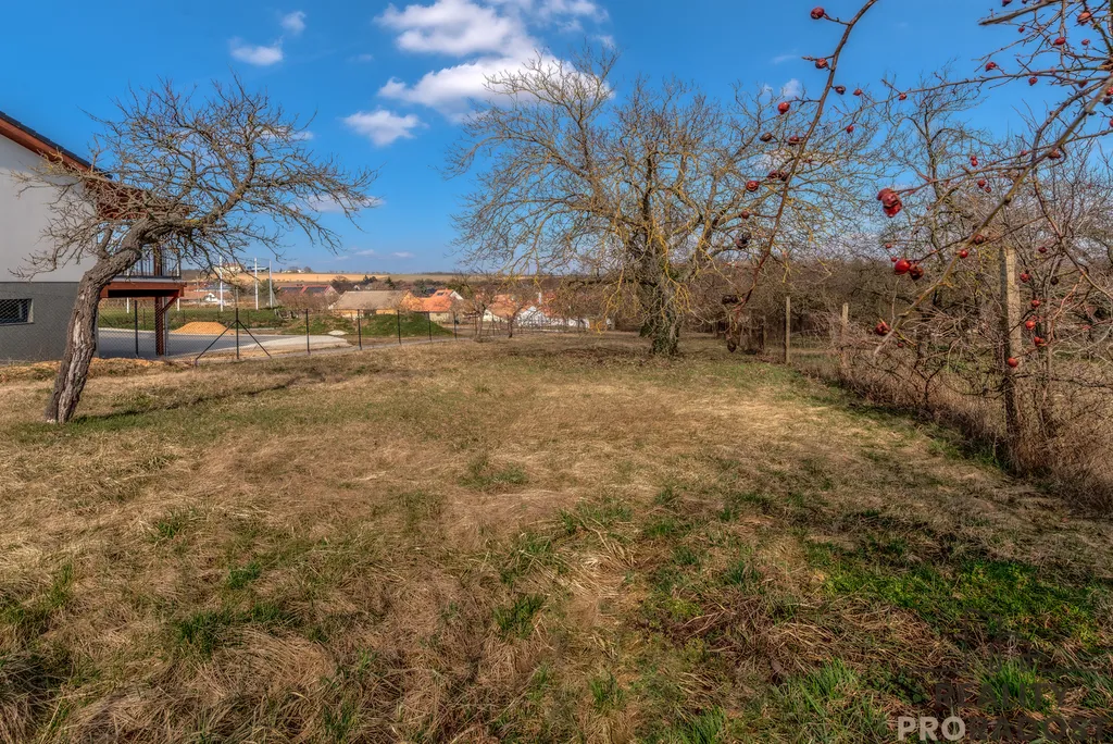 Velkou výhodou jsou již vzrostlé stromy na pozemku - švestky, ořechy, meruňka.