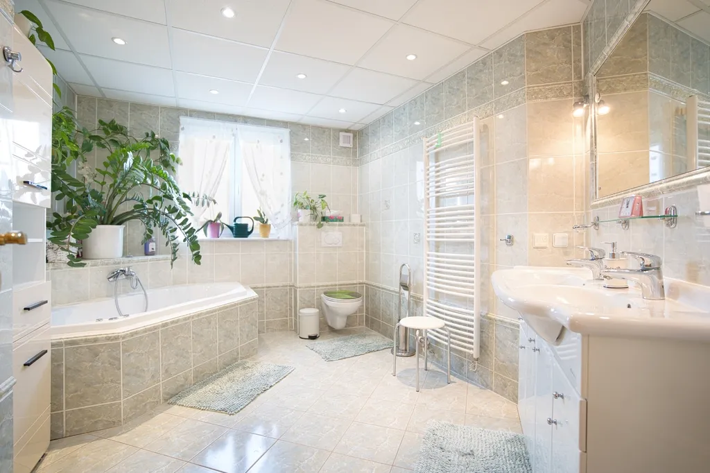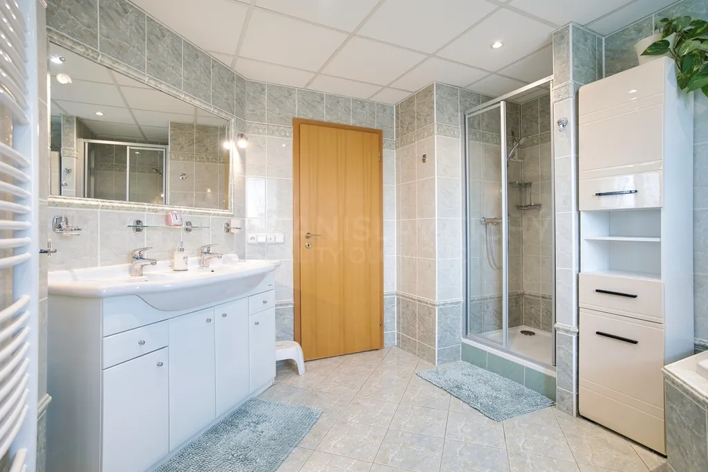 Kromě prostorné koupelny v podkroví, která uspokojí i ty nejnáročnější uživatele, je pro provoz domácnosti neocenitelná také prádelna s WC a umyvadlem pro rychlé použití v přízemí. Své využití určitě najdou i dvě komory a několik vestavěných skříní.