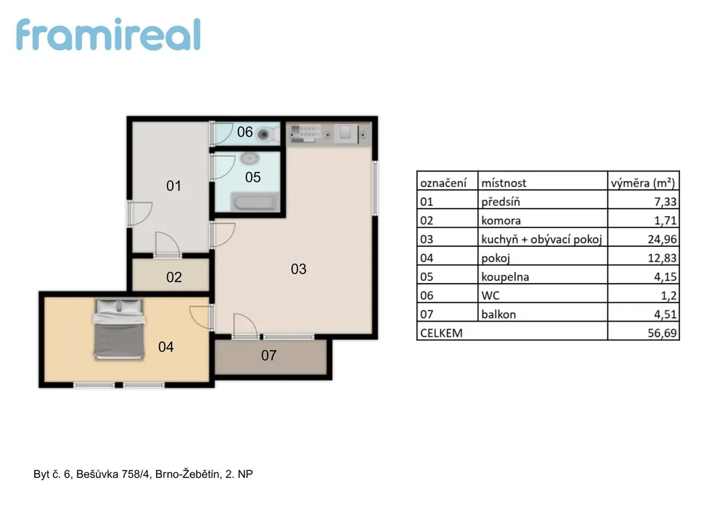 Prodej bytu 2+kk, Brno, Bešůvka, 56 m2 (ID: 1997280)