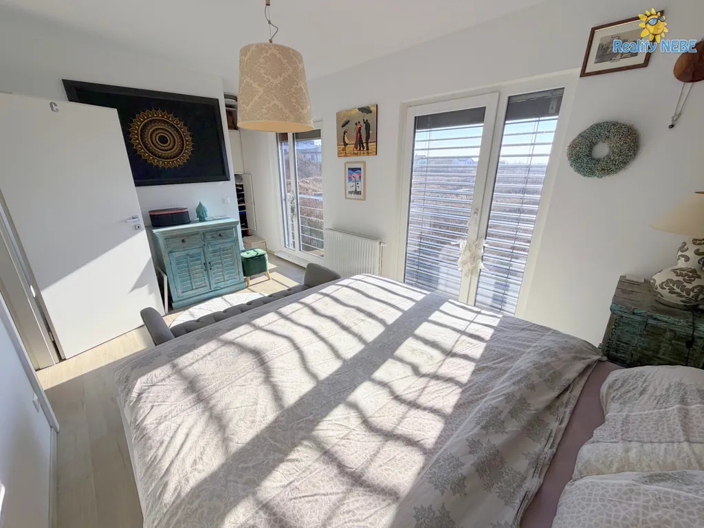 Nabízíme k dlouhodobému pronájmu rodinný dům o dispozici 4+kk a vnitřní podlahové ploše 94m2. Jedná se o jižní polovinu dvojdomku z roku 2018 se zahradou o velikosti 242m2. V přízemí domu se nachází prostorný obývací pokoj s výstupem na terasu, orientované na západní stranu. Dále plně zařízený kuchyňský kout, WC s umývadlem a technická místnost. V patře jsou 3 samostatné ložnice, koupelna s vanou a samostatné WC. Vybavení a nábytek dle dohody, možno ponechat, nebo vystěhovat. Vytápění a ohřev TUV čerpadlem, možno pro příjemnou atmosféru také využívat krbová kamna v obývacím pokoji.