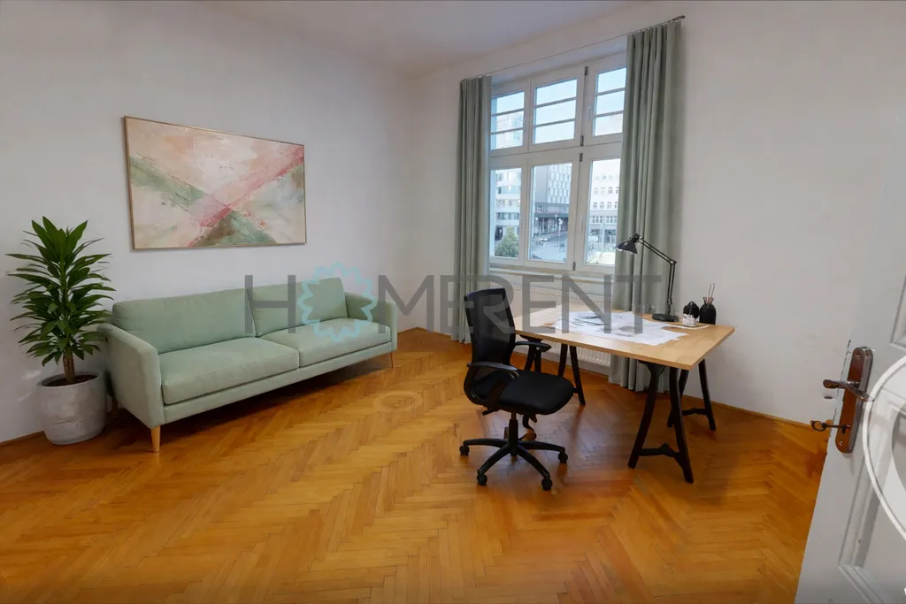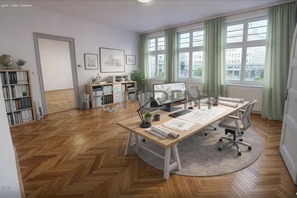 Nabízíme k dlouhodobému pronájmu reprezentativní a prostorné kancelářské prostory o celkové ploše 107 m², umístěné ve 3. patře historického domu U Orla – jedné z ikonických budov v samotném srdci Liberce. Tento dům z období první republiky vyniká vysokými stropy, noblesní architekturou a dlouhodobě fungující komerční jednotkou (lékárnou) v přízemí. Díky své prestižní poloze přímo u Soukenného náměstí a praktickému dispozičnímu řešení jsou prostory ideální pro kanceláře, ateliér, advokátní či konzultační služby nebo menší firmu.