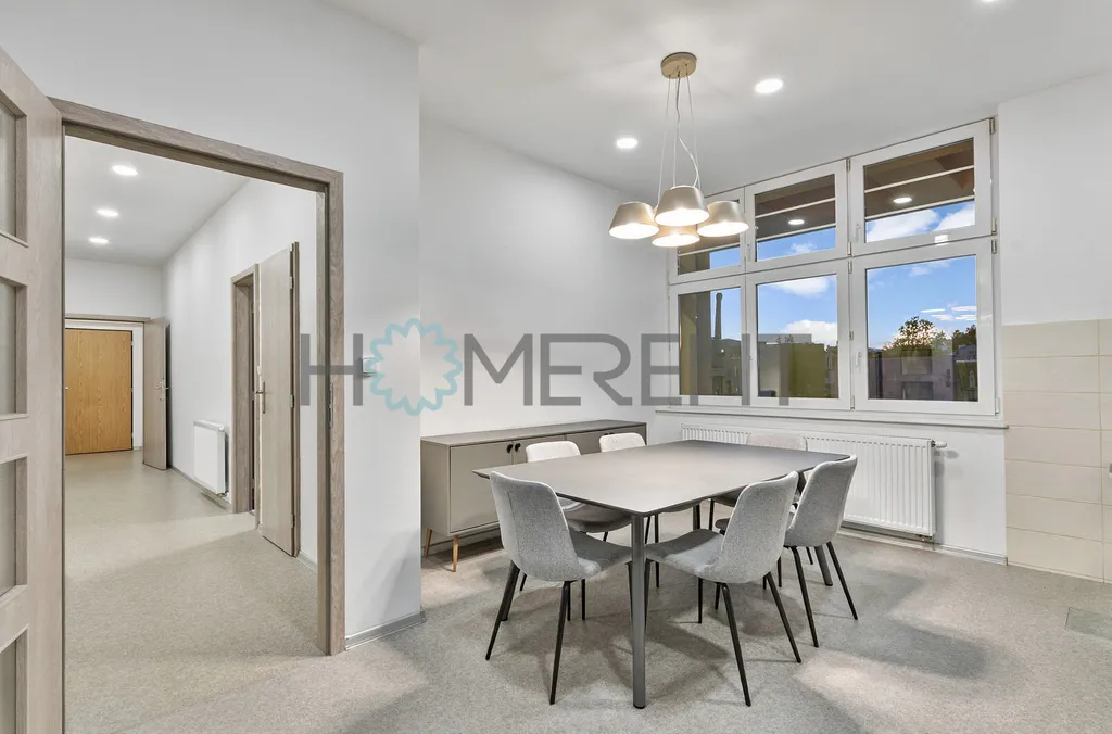 * Tři samostatné místnosti vhodné jako kanceláře, zasedací místnost či open space