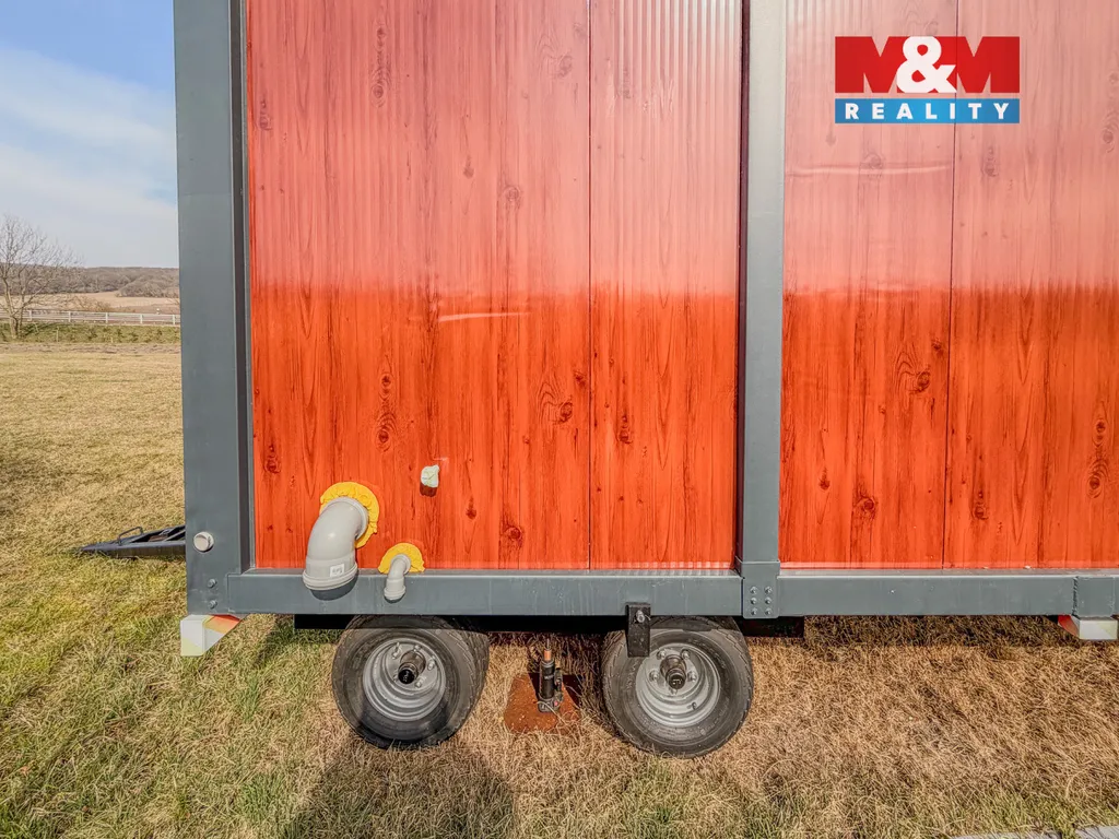 Součástí pozemku je nově upravená maringotka na kolech, která není pevně spojena se zemí. Maringotka je připravena na připojení inženýrských sítí, na pozemku však nejsou vybudovány přípojky a není zde možnost jejich napojení. Součástí vybavení je také nová separační toaleta.
