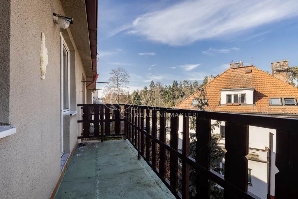 Byt o celkové výměře 85,24 m² (vnitřní výměra 78,73 m², balkon 6,51 m²) je vyřešen velmi prakticky a tvoří jej: hala, 2x pokoj, kuchyň se spíží, obývací pokoj, koupelna s vanou, samostatné WC a komora. Orientace obývacího pokoje a kuchyně je na jih s výhledem do parku Fr. Suchého, ostatní dva pokoje jsou orientovány na sever. Z většího z pokojů je přístup na balkon. Měsíční poplatky za byt jsou 993,- Kč + elektřina a plyn. Vytápění a ohřev vody zajišťuje vlastní plynový kotel, v obývacím pokoji je funkční krb. K bytu náleží malý půdní prostor přístupný z haly.