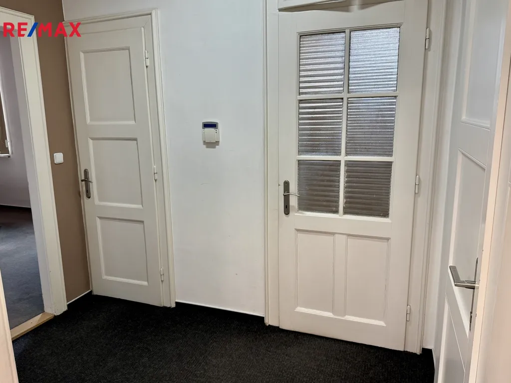 Kancelář má dva samostatné vchody, přes vstupní dveře z hlavní chodby, což nabízí možnost rozdělení prostor na dvě ideální poloviny.