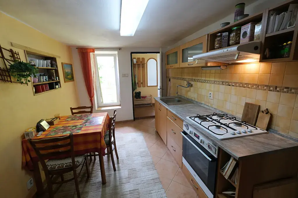 Prodej rodinného domu o velikosti 3+1 s garáží a dvorkem, který se nachází v okrajové části obce Zlechov. Dům je po částečné rekonstrukci - nová plastová okna, nové rozvody vody, částečně elektřiny, podlahy, zateplení, fasáda. Dispozičně se jedná o prosvětlenou vstupní chodbu, obývací pokoj s krbovými kamny a ložnice. Z chodby se vstupuje do otevřeného prostoru, který se momentálně využívá jako dětský pokoj. Dále kuchyň s komorou, koupelna s rohovou vanou a samostatné WC. Dům je napojen na elektřinu, obecní vodovod i kanalizaci. Vytápění je zajištěno kotlem na tuhá paliva a krbovými kamny. K domu náleží menší dvorek s posezením, garáž, podsklepená dílna a technické zázemí. Před domem jsou dvě parkovací místa. Zlechov je vzdálený 7 km od Uherského Hradiště. DŮM JE IHNED K NASTĚHOVÁNÍ.