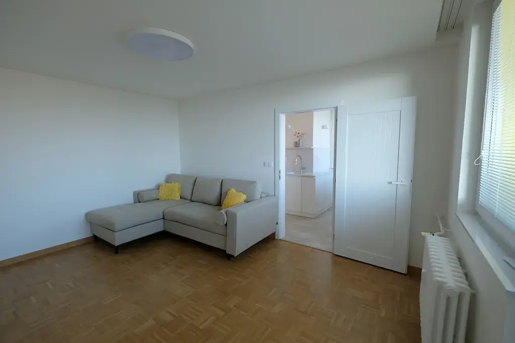 Nabízíme dlouhodobý pronájem luxusního bytu po celkové velmi vydařené rekonstrukci s dispozicí 2+1 v žádané lokalitě Uherského Brodu - části Šaripova. Jedná se o komfortní bydlení s dobrou dostupností do centra města s krásným výhledem na okolí. Celý interiér navrhla bytová designérka, která splnila funkčnost, praktičnost a styl celého bytu. Dispozičně se jedná o vstupní chodbu s klimatizací, odkládacím prostorem a šatnou. Kuchyň je oddělena posuvnými dveřmi s vitrážovou výplní, je zde nová kuchyňská linka s mnoha úložnými prostory a vestavěnými spotřebiči - lednice s mrazákem, myčka, pračka, indukční varná deska, horkovzdušná a mikrovlnná trouba a jídelní stůl se čtyřmi židlemi. Obývací pokoj je zařízen rozkládací sedací soupravou se vstupem na lodžii. Samostatná ložnice je orientovaná na jihozápad. V koupelně se nachází vana se zástěnou, kvalitní umyvadlo se skříňkou, žebříkový radiátor, skříňka s úložným prostorem a toaleta. Podlahy jsou řešeny novými dřevěnými parkety a dlažbou. K bytu náleží sklepní kóje umístěná v přízemí bytového domu. Parkování je možné přímo u domu. Nájem činí 16.500,-Kč/měsíčně + 3.500,-Kč/měsíčně energie + elektřina. Byt je ihned k dispozicí.