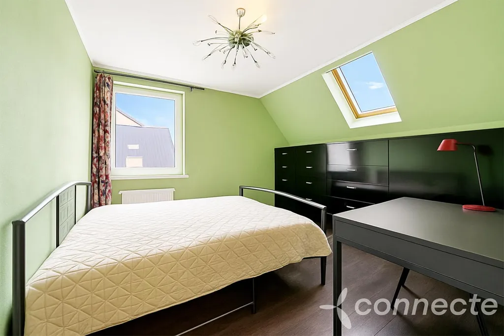 Po schodech vystoupáte do patra a vstoupíte do rozlehlé haly, která může být dalším plnohodnotným obývacím pokojem. Ideální místo na večerní posezení, než se vydáte spát. V prvním patře jsou k dispozici tři ložnice, přičemž největší z nich má svojí vlastní šatnu a vstup do koupelny s vanou a toaletou.