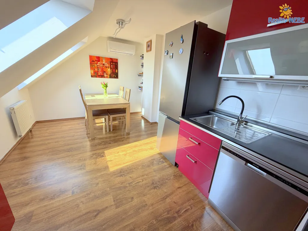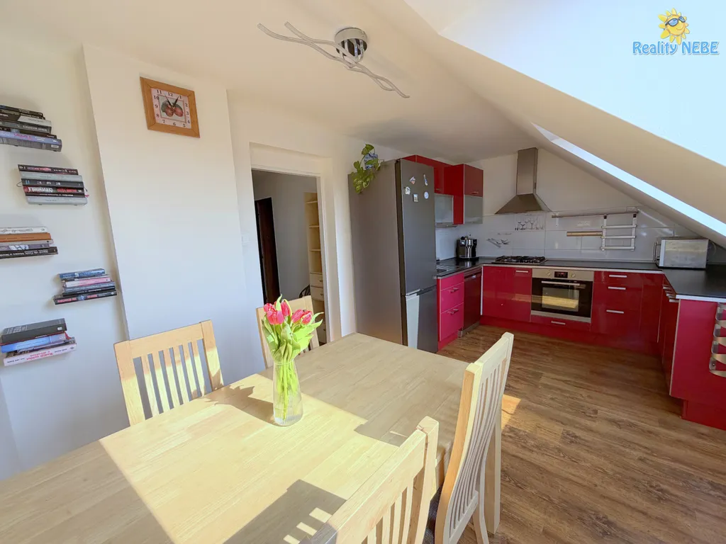 Nabízíme k prodeji bytovou jednotku v osobním vlastnictví o velikosti 110m2 a dispozici 4+1 ve 2.patře (3/3NP) cihlového domu v klidné části Prahy - Březiněvěs. Byt vznikl jako půdní vestavba, skládá se tak ze dvou podlaží propojených schodištěm. Ve 3NP se nachází jedna ložnice, obývací pokoj s pracovním koutem, samostatná, plně zařízená kuchyně, koupelna a samostatné WC. Po dřevěném schodišti ve 4NP jsou dva samostatné pokoje a WC s umývadlem. Vytápění a ohřev TUV je vlastním plynovým kotlem, ve všech obytných pokojích je zavedena klimatizace. K bytu náleží velký sklep 15m2 a společná sušárna. K užívání je také zahrada kolem domu, kde má každý byt vymezeno cca 100m soukromého prostoru a kde se také nachází dostatek parkovacích míst.