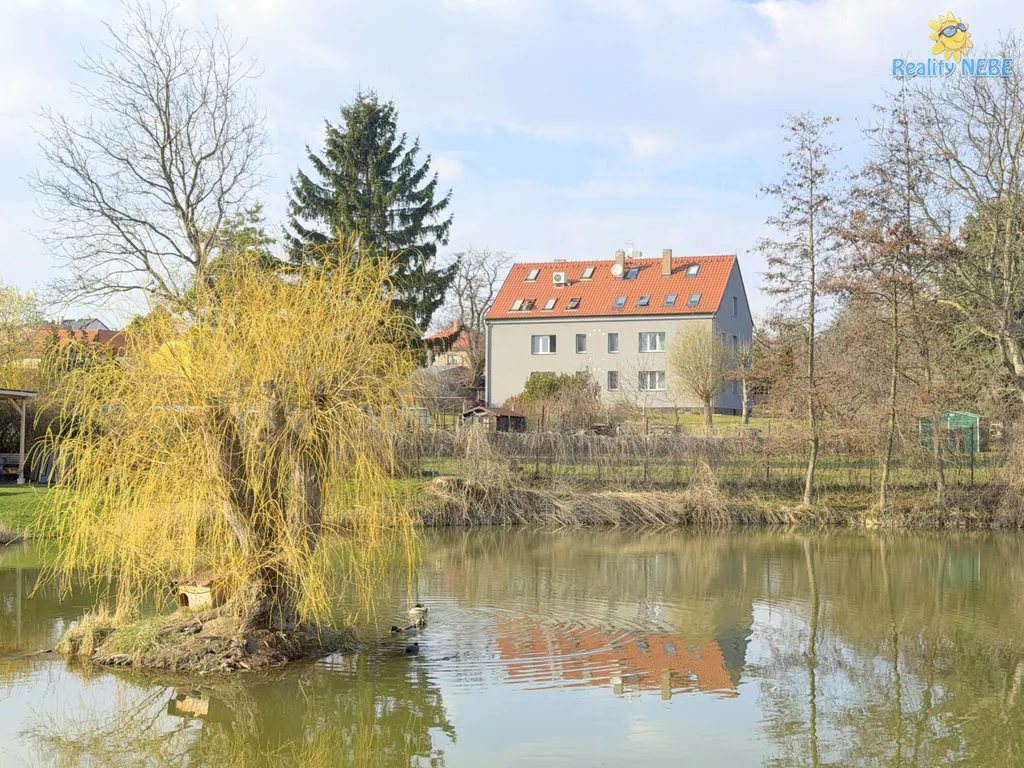 Okolí je velmi klidné, u domu dostatek zeleně, jezírko, dětské hřiště, zastávka MHD a 10minut chůze obchodní centrum.