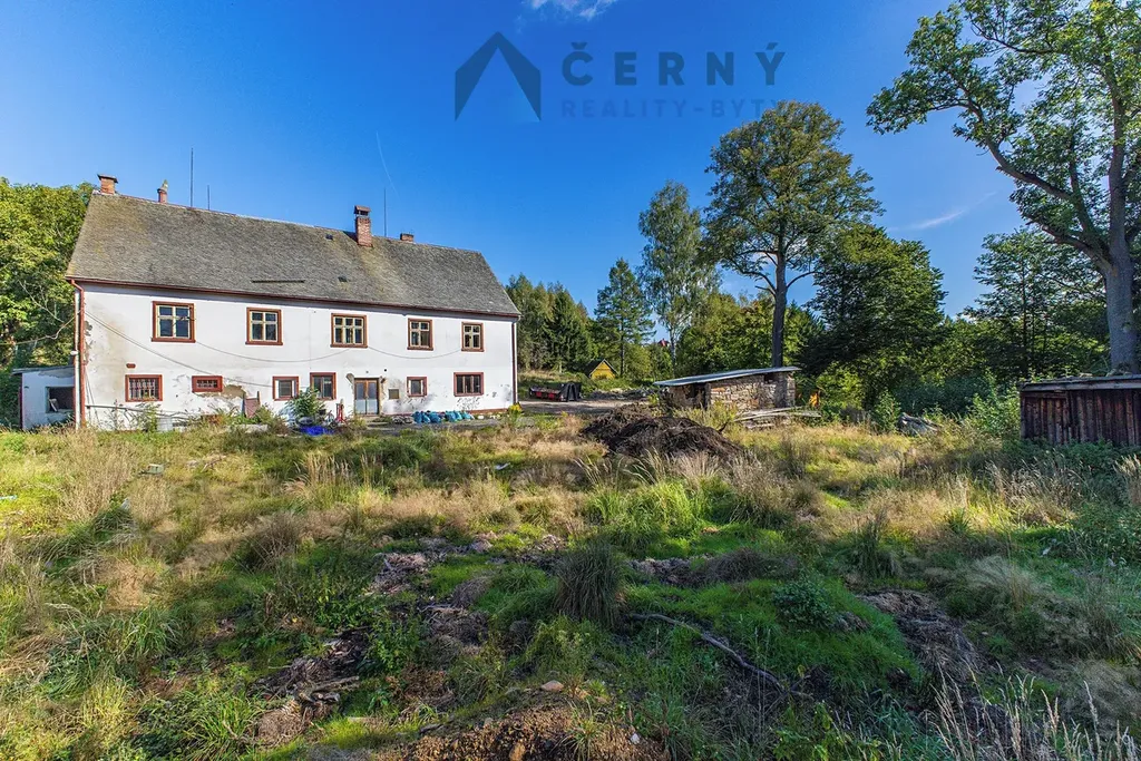 Část pozemku je porostlá stromy a travinami, ve střední, rovinaté části stojí dva objekty. Dvoupodlažní, podsklepená nemovitost s obytným podkrovím, jejíž zastavěná plocha činí 275m2, celková užitná cca 400m2. Dům sloužil původně jako obytný prostor, aktuálně jeho stav vyžaduje rekonstrukci. Druhým objektem je dřevěná hala - stodola se zděnou podezdívkou - zastavěná plocha 244m2. Hala je zčásti rozdělená do dvou pater, ve spodním je zděná garáž a dílna, horní patro bylo využíváno jako seník.
