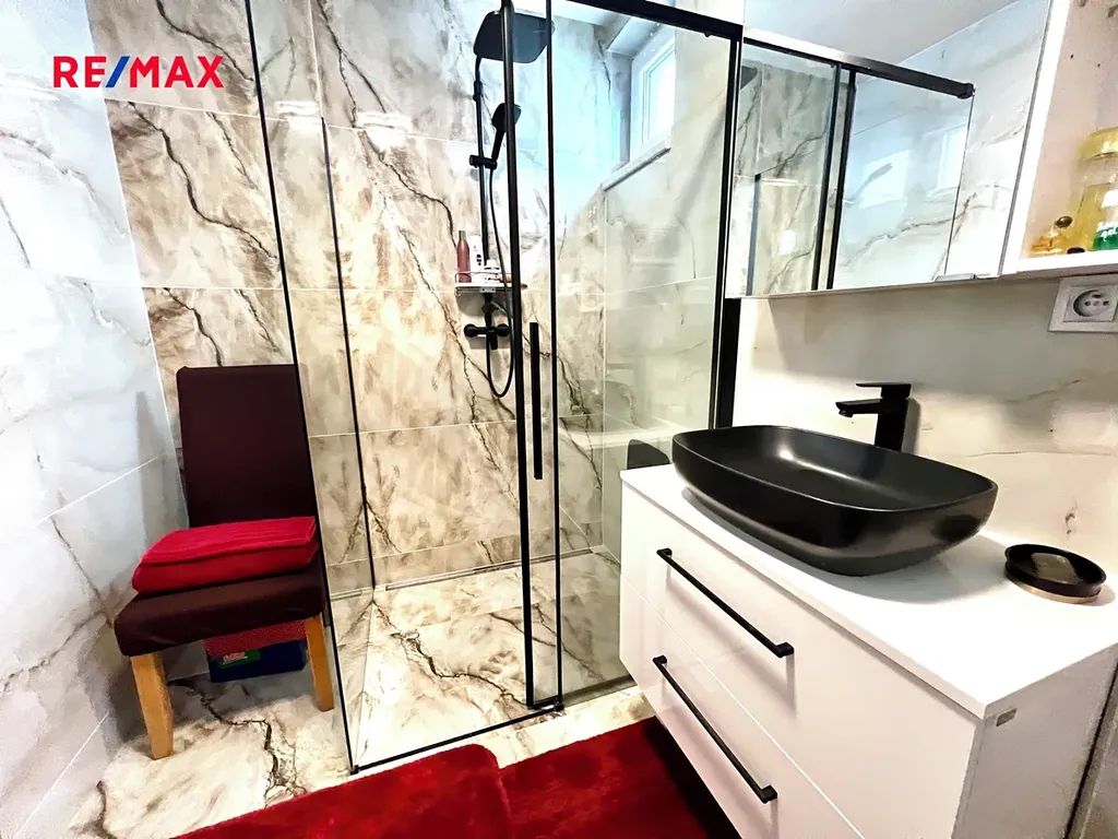 - koupelna s umyvadlem, sprchovým koutem, úložným prostorem a toaletou.