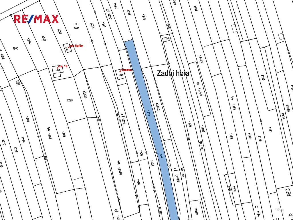 Parcela je udržovaná, pravidelně kosená.