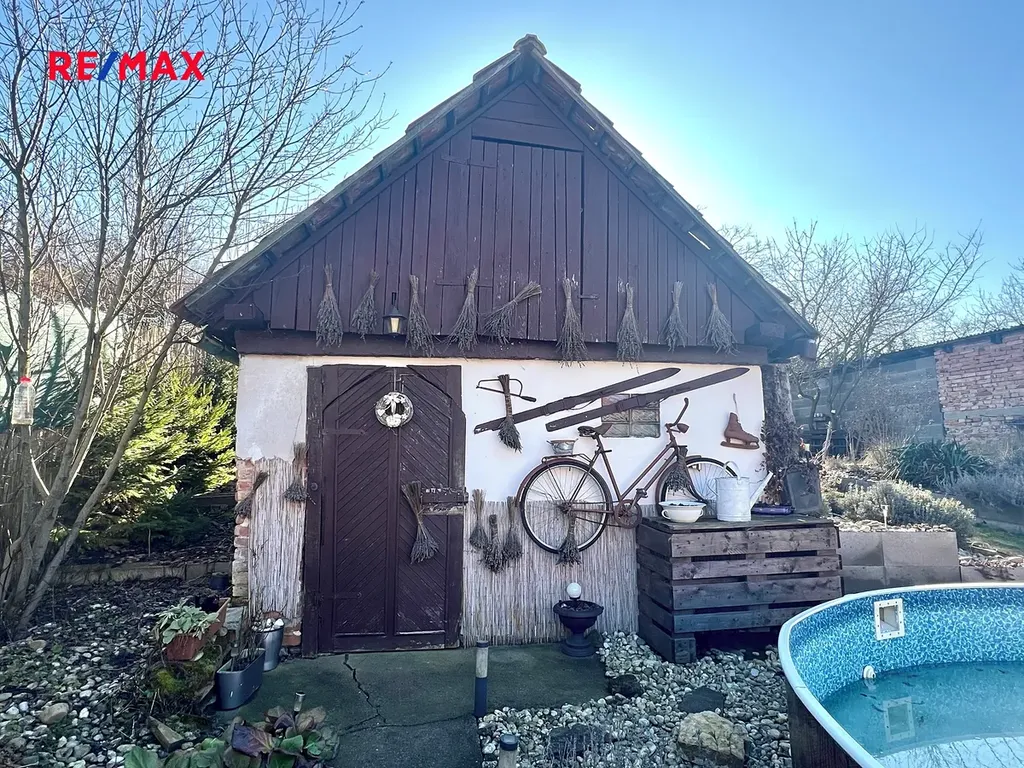 Na pozemku se nachází studna s užitkovou vodou, zemní sklep se stálou teplotou a půdou na uskladnění zahradní techniky.