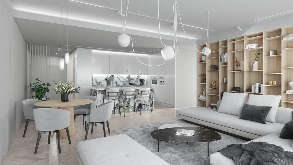 V inzerci jsou použity interiérové vizualizace.