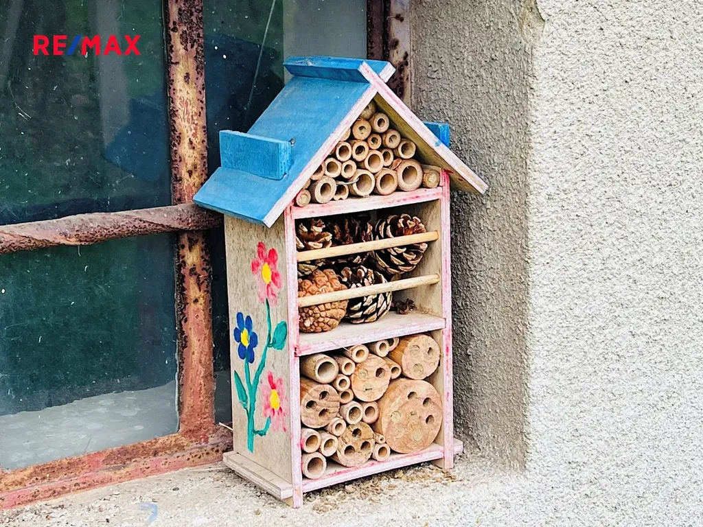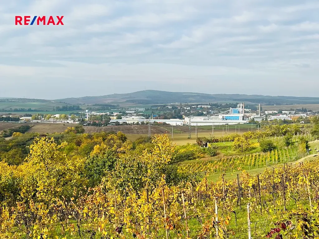 V horní části pozemku s krásným výhledem na Kyjov a okolí je postavena zděná chatka (6 m x 4 m).