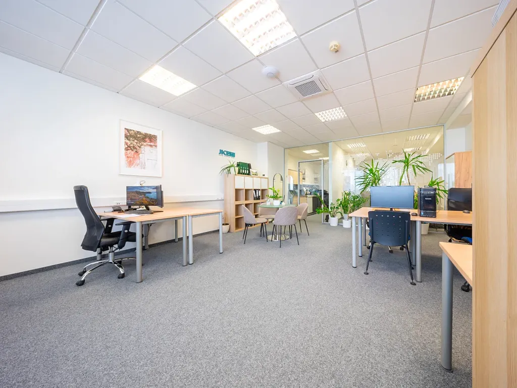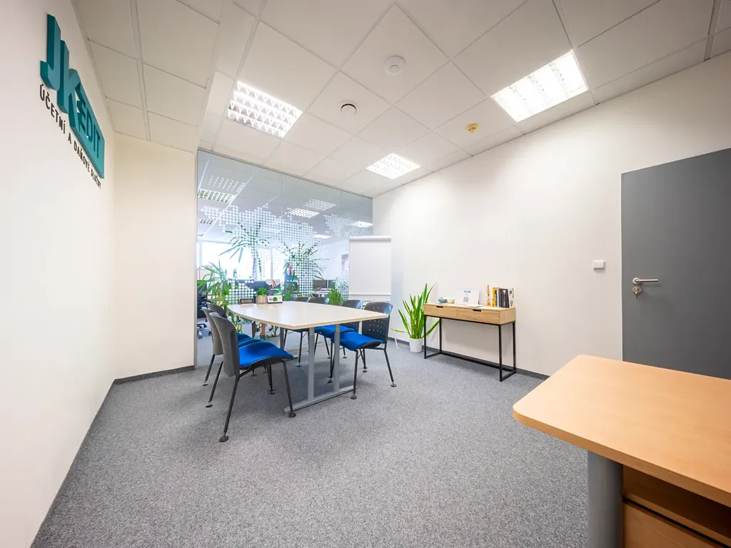 V ceně nájmu můžete využívat zasedací místnost, kuchyňku s kávovarem, tiskárnu, WiFi připojení, toalety a poštovní schránku. Pro větší komfort je vstup do kanceláře opatřen kódovým zabezpečením. Jednou týdně probíhá v kanceláři základní úklid, jednou měsíčně pak větší úklid.