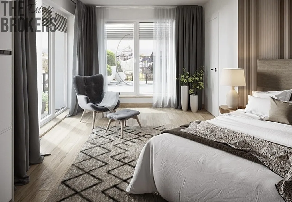 Tento prostorný byt 4+kk o celkové rozloze (114,3 m²) se nachází v prvním patře rezidenčního komplexu. Nabízí prostorný obývací pokoj s kuchyňským koutem, tři samostatné ložnice, koupelnu s toaletou a samostatnou toaletu ( 104,8 m²). Balkon ( 4m²) situovaný do vnitrobloku se zahradou, který poskytuje skvělé místo pro relaxaci. Součástí bytu je sklep ( 5, 5m²). Ideální pro rodinné bydlení.