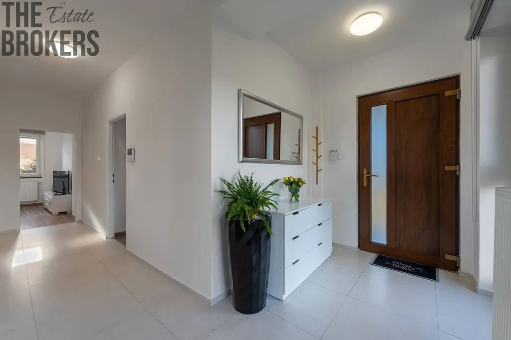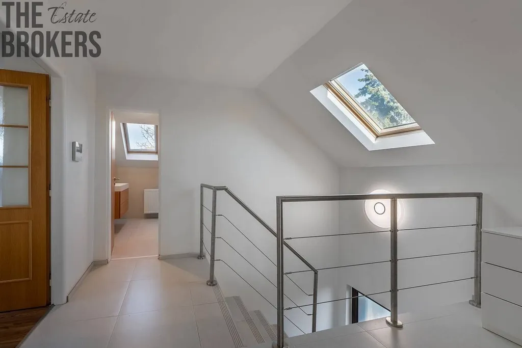 Dům je vybaven moderními technologiemi pro maximální pohodlí a bezpečí: kamerový systém, zabezpečovací zařízení, videotelefon, dálkově ovládaná vrata i garáž. Údržbu zahrady vám usnadní robotická sekačka.