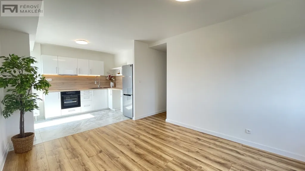 Byt je po kompletní rekonstrukci a září novotou. Obývací pokoj propojený s kuchyní nabízí velmi vzdušný a příjemný prostor, celodenně prosvětlený. V kuchyni je indukční varná deska a elektrická pečící trouba vše kvalitní značka GORENJE. Moderní úsporná lednice Samsung, příprava na pračku.