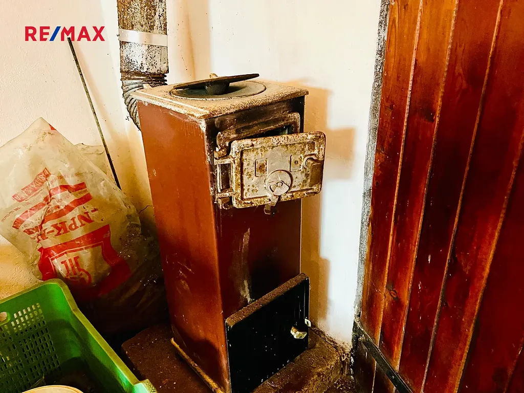 Místnost s posezením se vytápí kamny na tuhá paliva.