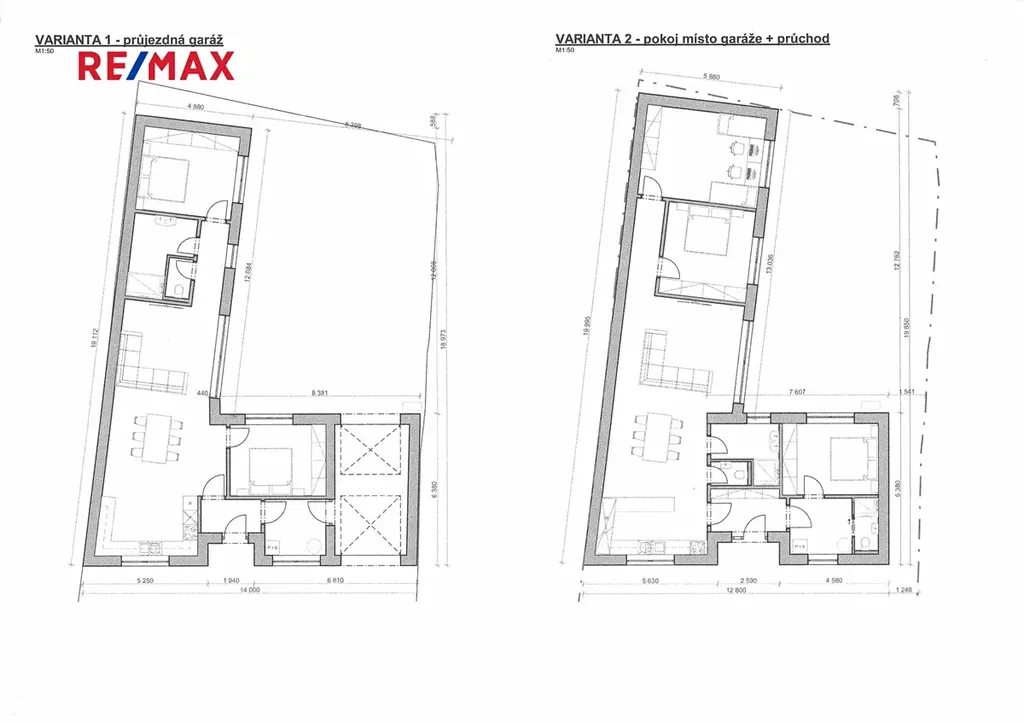 Rozměry pozemku: šířka 14m/12m x délka 23m/20m.