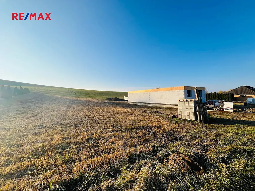 Rovinatý pozemek s orientací sever - jih se nachází na okraji obce, v nově budované zástavbě rodinných domů.