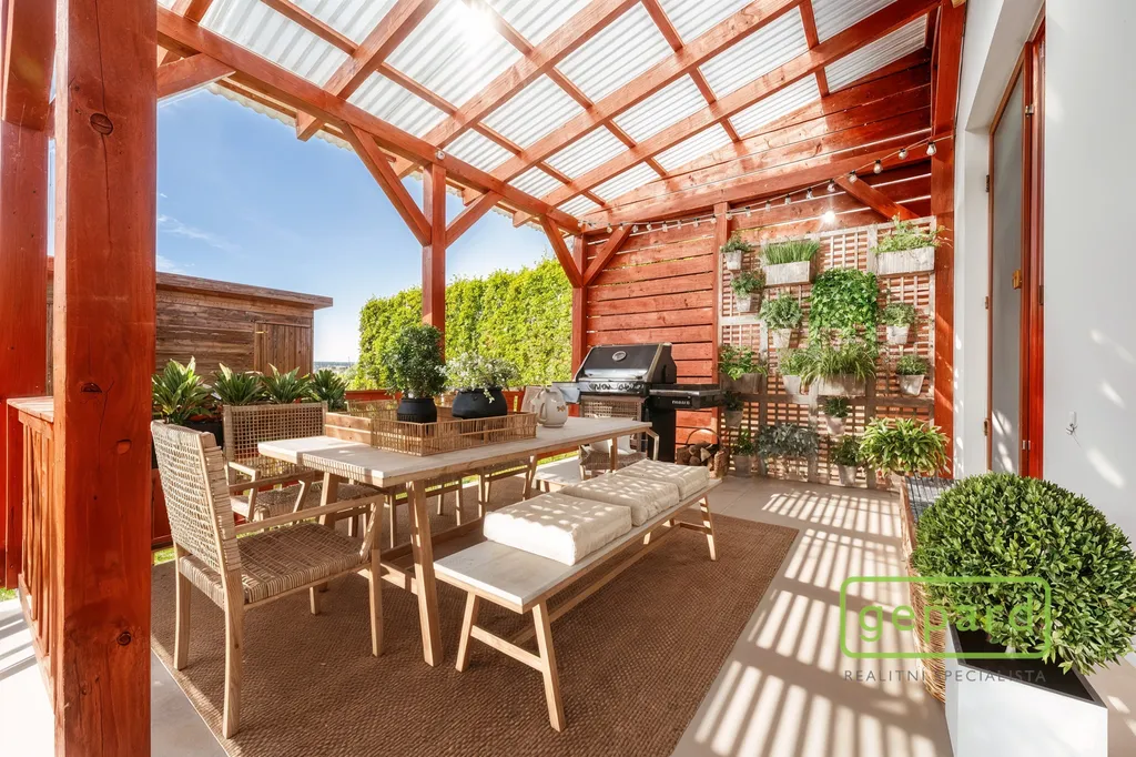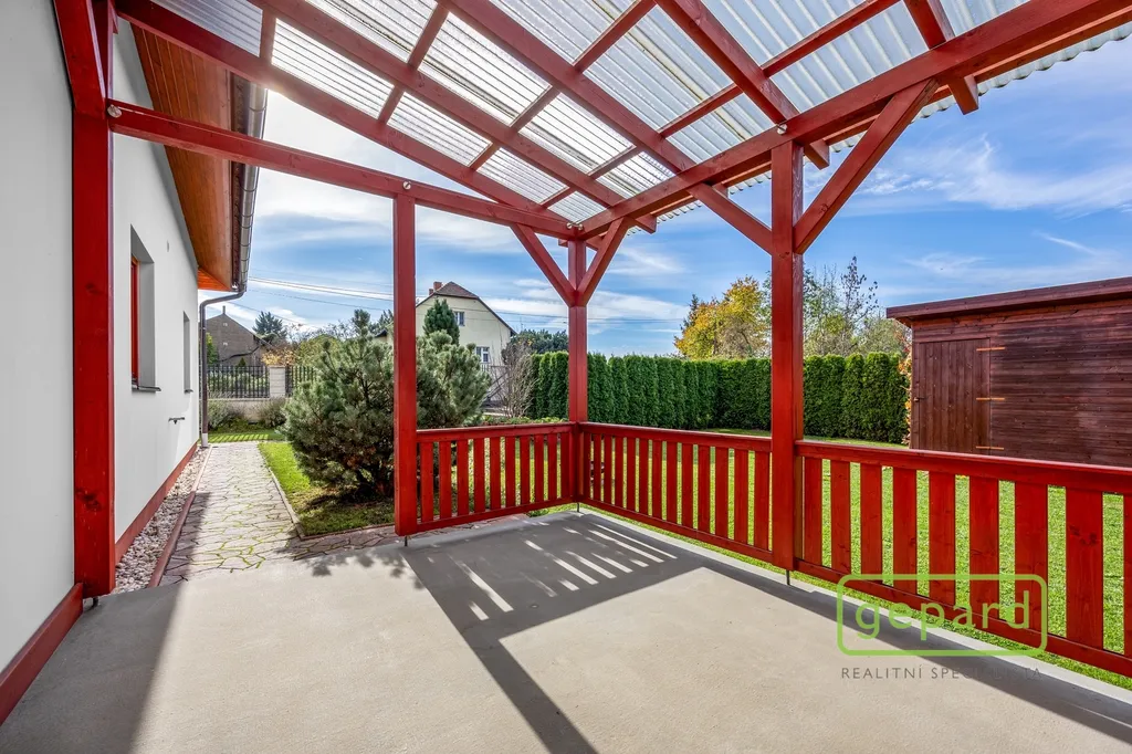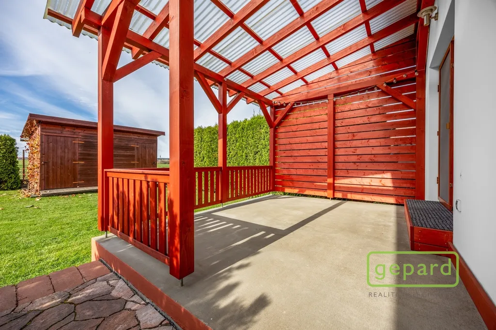 Velkou předností nemovitosti je i venkovní prostor. Zahrada je navržena velmi prakticky – poskytuje dostatek místa pro odpočinek, dětské hry i posezení s přáteli, aniž by byla náročná na údržbu. Na terase si můžete užívat klidné večery, víkendové snídaně na čerstvém vzduchu nebo letní grilování. Na pozemku je zároveň zajištěno pohodlné parkování pro dva osobní automobily.