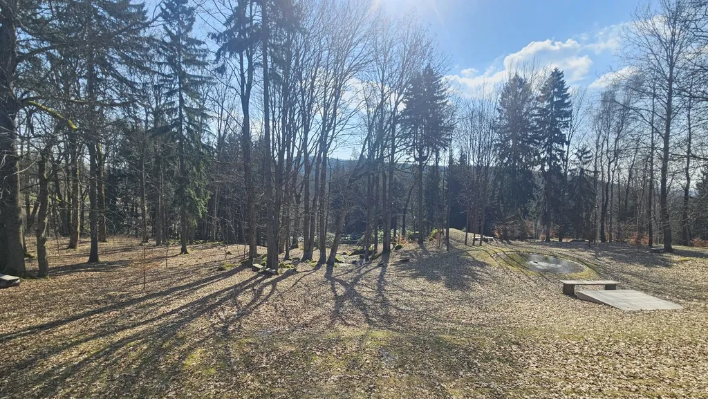 Bezprostřední okolí domu tvoří pečlivě udržovaný lesopark, který poskytuje klid, soukromí a jedinečnou atmosféru horského prostředí. K dispozici je posezení u jezírka s fontánou a nedaleko protéká přírodní potůček, což vytváří ideální podmínky pro relaxaci hostů i další rozvoj konceptu například v oblasti wellness nebo boutique ubytování.